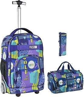 Rucksacktrolley Schultrolley XL 35L | Rolly Schulrucksack Trolley Rucksack | Organizerfach | Set 3 teilig inkl. Stifteetui, Sporttasche blau