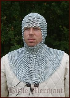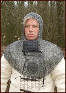 Ulfberth Kettenhaube vernietet mit quadratischem Mundschutz, ID8mm, Rundring Schaukampftauglich