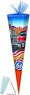 alles-meine.de GmbH Schultüte - Trucks Route 66 - 50 cm rund - mit / ohne Kunststoff Spitze - Tüllabschluß - Zuckertüte - für Jungen Auto Truck LKW USA Transporter Autos