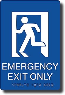 ADA Compliant Exit Sign with Braille (6\" x 9\" Blue Emergency Exit Only with Figure)