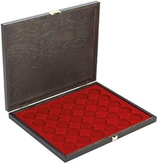 LINDNER Echtholz-Münzkassette Carus-1 mit Einer dunkelroten Münzeinlage für 30 Münzkapseln mit Außen-Ø 37,5 mm, z.B. für Orig. verkapselte deutsche 20 Euro-/10 Euro-Silbermünzen in Spiegelglanz