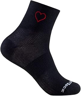 Wrightsock Profi Sportsocke, Laufsocke Modell Coolmesh II in schwarz, Anti-Blasen-System, doppellagig, Quarter mittellang- mit roten gesticktem Herz