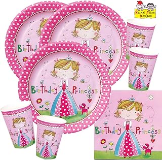 52-teiliges Party-Set Rachel Ellen Kleine Prinzessin - Teller Becher Servietten für 16 Kinder
