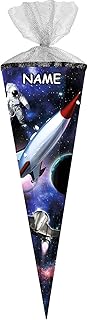 alles-meine.de GmbH Schultüte - Raumschiff - Weltraum Rakete - 50 cm - rund - incl. Name - mit Tüllabschluß - Zuckertüte - Nestler - mit / ohne Kunststoff Spitze - für Jungen..
